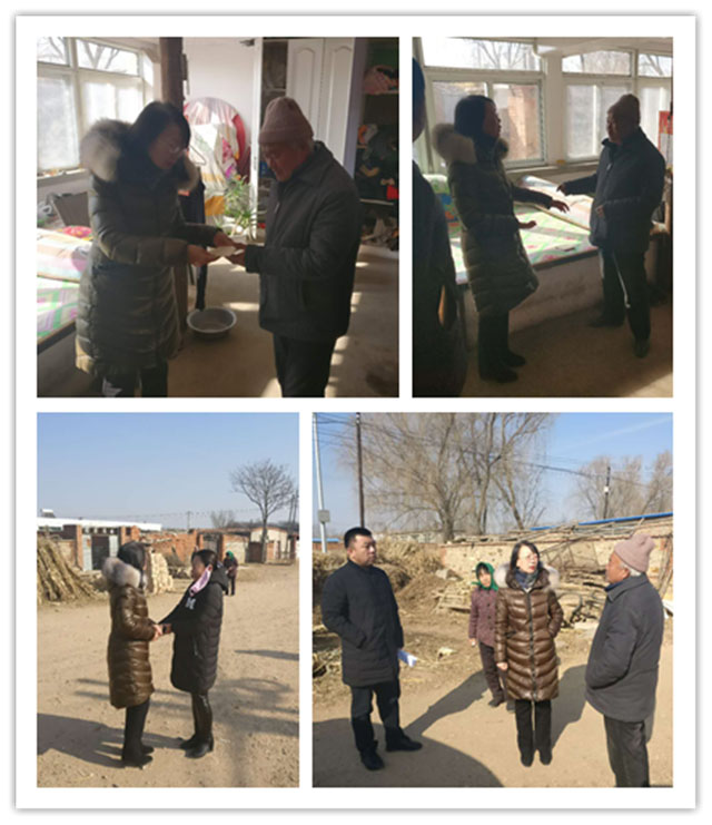 2018年2月7日,集團(tuán)黨委副書記譚衛(wèi)紅,黨群工作部部長溫善一行4人迎著錦城第一場雪趕往黑山縣自強(qiáng)村,在村韓婦女主任的帶領(lǐng)下走訪慰問集團(tuán)對接的韓硯田、孟令忠兩戶貧困家庭,為他們帶去集團(tuán)黨委和2000余名職工的溫暖與關(guān)懷,并送上米、油和慰問金。走訪到貧困戶對象家中,譚書記親切慰問了他們目前的身體狀況及生活情況,鼓勵(lì)他們戰(zhàn)勝困難,樹立生活信心,積極生活。兩戶被走訪對象紛紛表示感謝,感謝交通集團(tuán)送來的深情厚意。通過春節(jié)前的走訪慰問,讓這兩戶貧困家庭溫暖過冬,幸福過年,使群眾感受到黨和政府對他們的關(guān)愛,使他們更加堅(jiān)定信心,對未來的日子充滿希望。