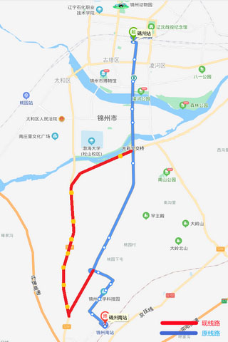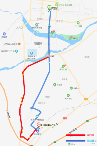 205路 從2021年5月8日開(kāi)始,因阜錦線南山西側(cè)隧道封閉施工,205路(錦州站—錦州南站方向)車輛無(wú)法正常通行,由中央南街改行南廣路、凌西大街、渤海大道至嵩山路返回原線路,不經(jīng)過(guò)金城御瀾山暻園、桃源小鎮(zhèn)路口和桃園3處單側(cè)公交站點(diǎn)。增設(shè)碧盛慧(210路)、公交三公司(215路)、北鋪(215路)、桃園道口(215路)、大圍子(215路)、車輛管理所(215路)、北三道壕(215路)和市松山紙板公司(215路)8處單側(cè)公交站點(diǎn),待道路具備通行條件后,立即恢復(fù)運(yùn)行原線路;錦州南站—錦州站方向按原線路運(yùn)行。