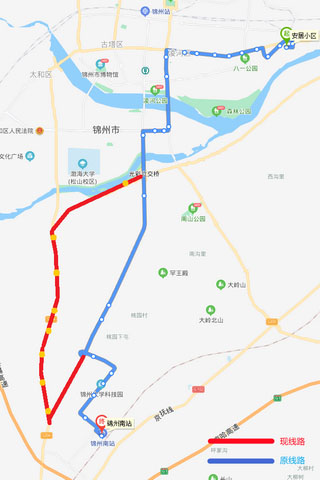 212路 從2021年5月8日開(kāi)始,因阜錦線南山西側(cè)隧道封閉施工,212路(安居小區(qū)—錦州南站方向)無(wú)法正常通行,由中央南街改行南廣路、凌西大街、渤海大道至嵩山路返回原線路,不經(jīng)過(guò)金城御瀾山暻園、桃源小鎮(zhèn)路口和桃園3處單側(cè)公交站點(diǎn)。增設(shè)碧盛慧(210路)、公交三公司(215路)、北鋪(215路)、桃園道口(215路)、大圍子(215路)、車輛管理所(215路)、北三道壕(215路)和市松山紙板公司(215路)8處單側(cè)公交站點(diǎn),待道路具備通行條件后,立即恢復(fù)運(yùn)行原線路;錦州南站—安居小區(qū)方向按原線路運(yùn)行。