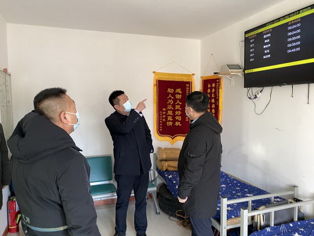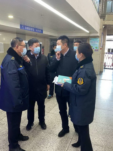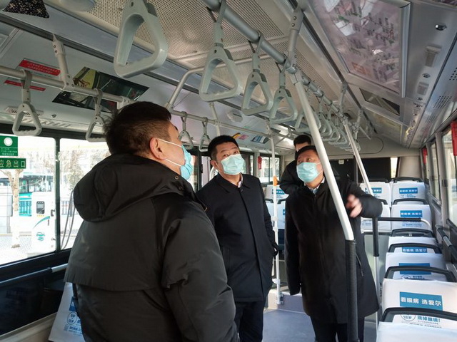 春運(yùn)第一天集團(tuán)董事長(zhǎng)王琳、總經(jīng)理李國(guó)政、副總經(jīng)理祝偉帶領(lǐng)安保部工作人員對(duì)公交公司、客運(yùn)總站春運(yùn)部署、服務(wù)舉措、場(chǎng)站安全、疫情防控等重點(diǎn)工作進(jìn)行了安全檢查,并向奮戰(zhàn)在春運(yùn)工作一線的廣大職工贈(zèng)送了防疫物資。